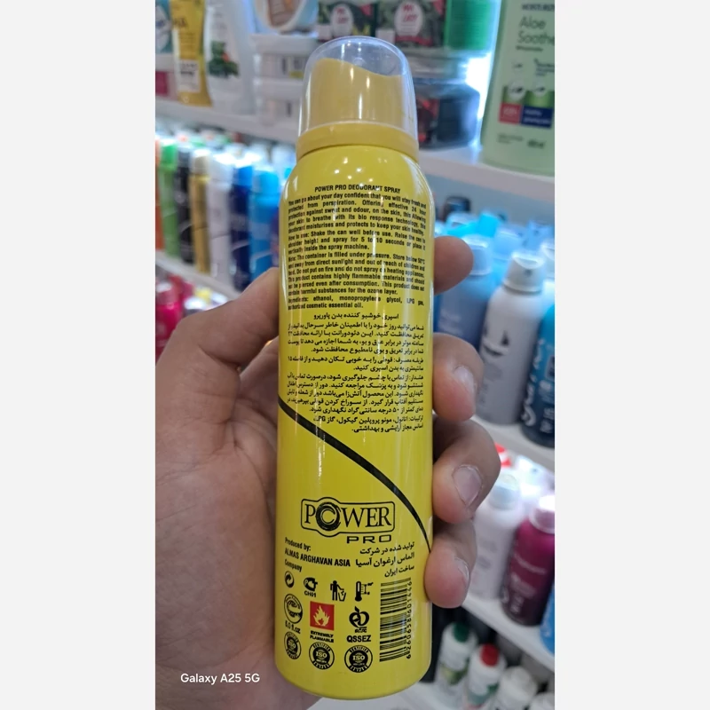 اسپری بدن پاور پرو رایحه لالیکلامور حجم 150 میل باکیفیت بدون ایجاد حساسیت ماندگاری بالا پوکه آلومینیوم قابل استفاده روی پوست بدن و پارچه