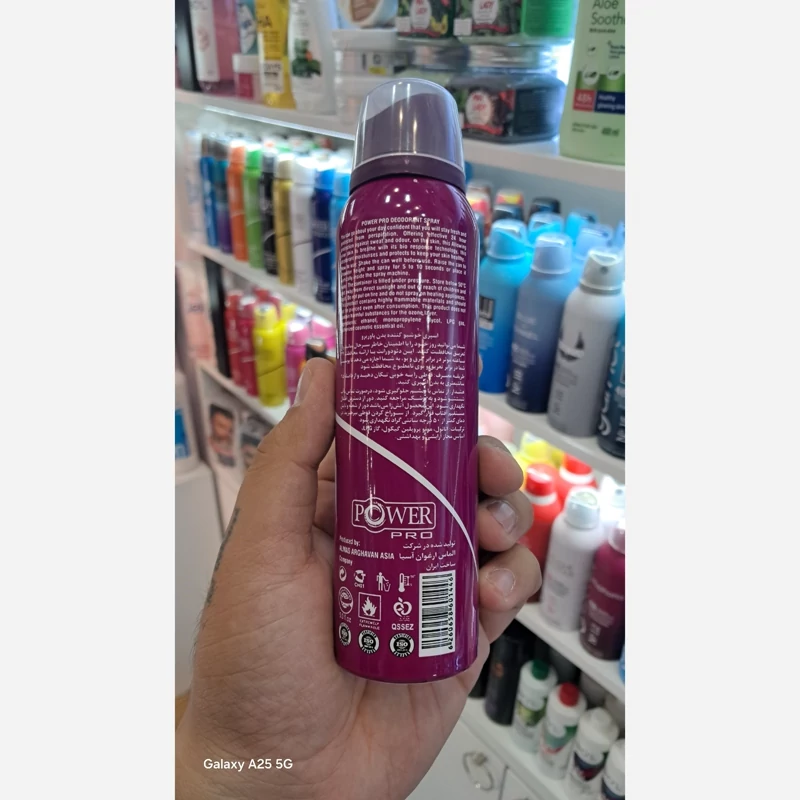 اسپری بدن پاورپرو رایحه اکلت حجم 150 میل باکیفیت بدون ایجاد حساسیت ماندگاری بالا پوکه آلومینیوم قابل استفاده روی پوست بدن و پارچه