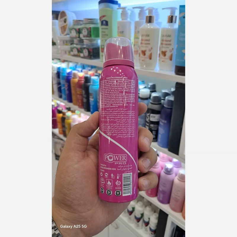 اسپری بدن پاور پرو رایحه بامبشل باکیفیت بدون ایجاد حساسیت ماندگاری بالا پوکه آلومینیوم قابل استفاده روی پوست بدن و پارچه حجم 150میل