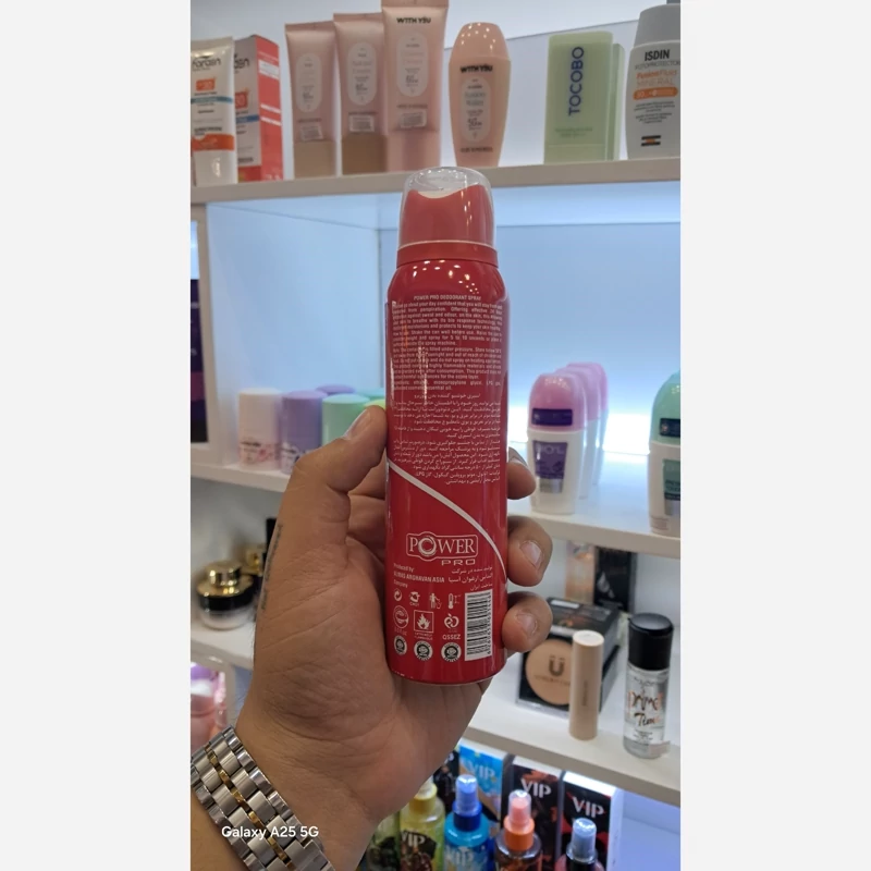 اسپری پاورپرو رایحه گود گرل ضدتعریق باکیفیت بدون ایجاد حساسیت ماندگاری بالا پوکه آلومینیوم قابل استفاده روی پوست بدن و پارچه حجم 150 میل