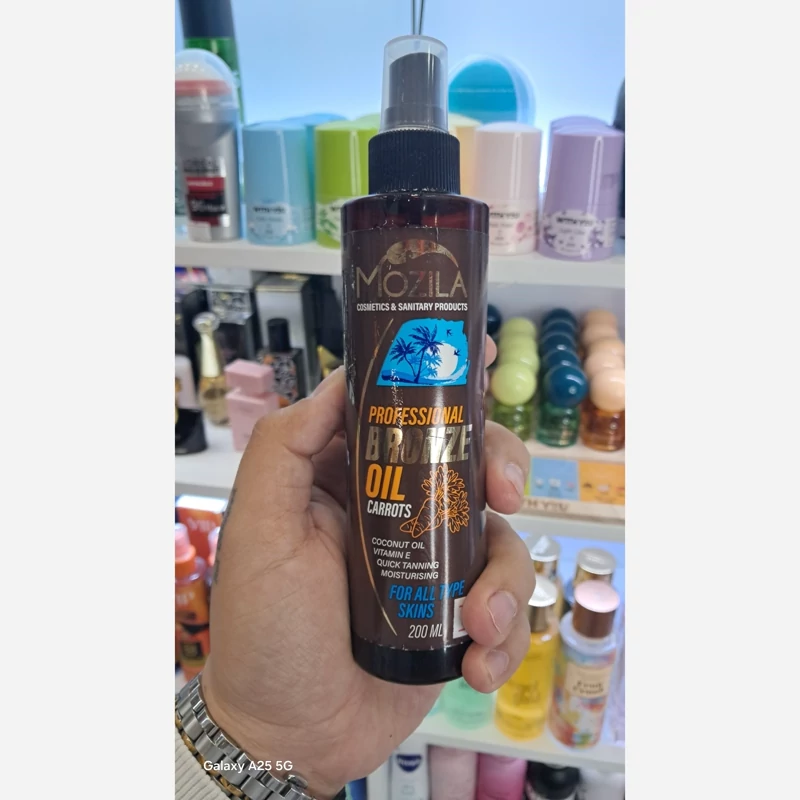 _روغن برنزه کننده جوجوبا موزیلا حاوی روغن بادام شیرین روغن جوجوبا ویتامین E مرطوب کننده دارای خاصیت ضدآبی _روغن برنزه کننده هویج موزیلا حاوی روغن بذرهویج روغن نارگیل ویتامین E مرطوب کننده و ضدآب