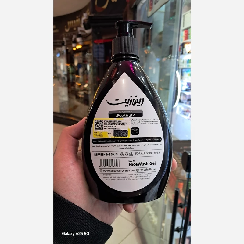 ژل شست و شو رینوزیت حاوی پودر ذغال مناسب انواع پوست بخصوص پوست چرب فری سولفات بدونپارابن روشن کننده و پاکسازی کاملپوست